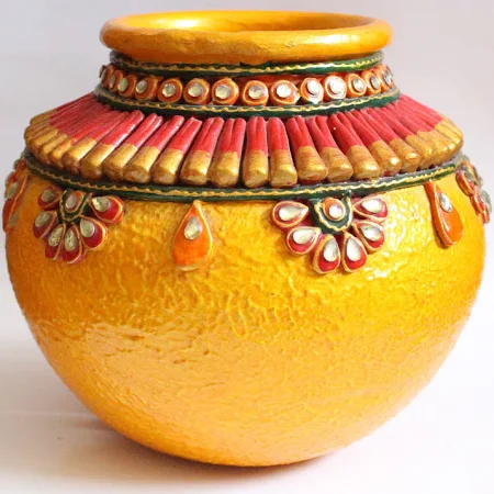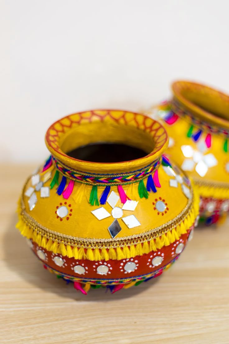 Celebrate the richness of Indian culture with this colorful handcrafted terracotta matka, a beautiful blend of tradition and artistry. Made by skilled artisans using age-old techniques, this traditional matka is adorned with vibrant hues and ethnic patterns, making it an eye-catching addition to your festive décor. Whether used for rituals, decorative displays, or as a symbol of prosperity during Indian festivities, this terracotta piece brings warmth, authenticity, and cultural charm to any space. A true tribute to handcrafted Indian heritage.